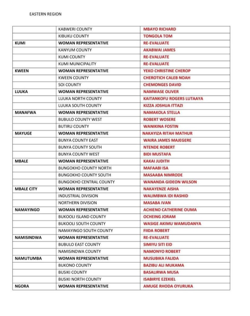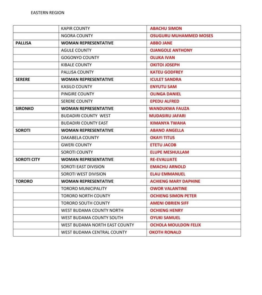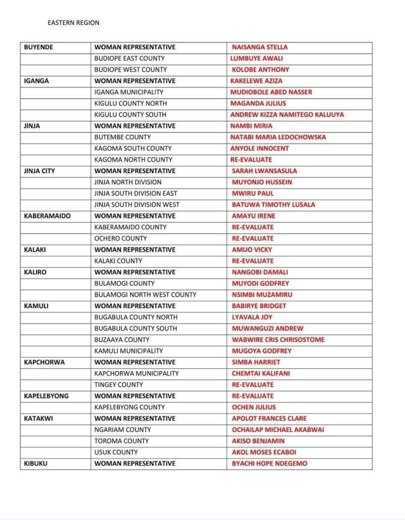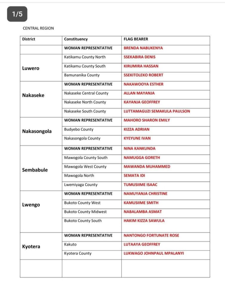 The National Unity Platform (NUP) has unveiled the official list of its flagbearers who will contest for parliamentary seats in the 2026 general elections. The names were released by the party’s Election Management Committee, chaired by Harriet Chemutai, and published across NUP’s official platforms.