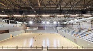 The indoor arena has a seating capacity of 2,080 and can host games like volleyball, basketball, boxing, badminton, and table tennis.